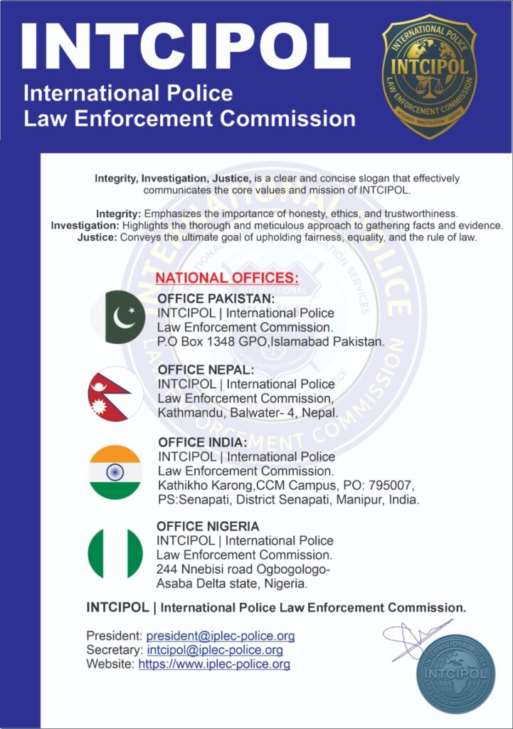 Warm greetings from INTCIPOL | International Police Law Enforcement Commission.